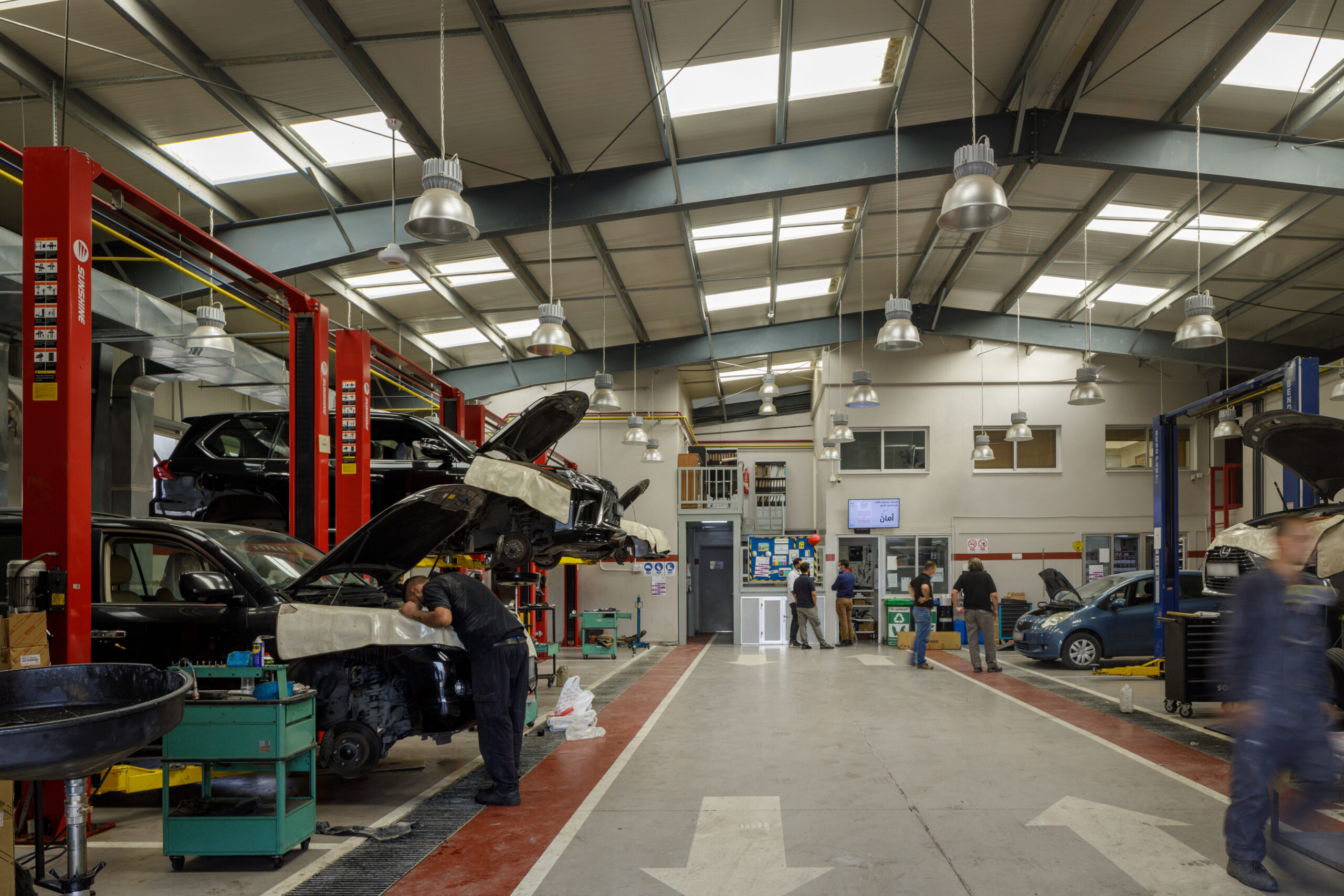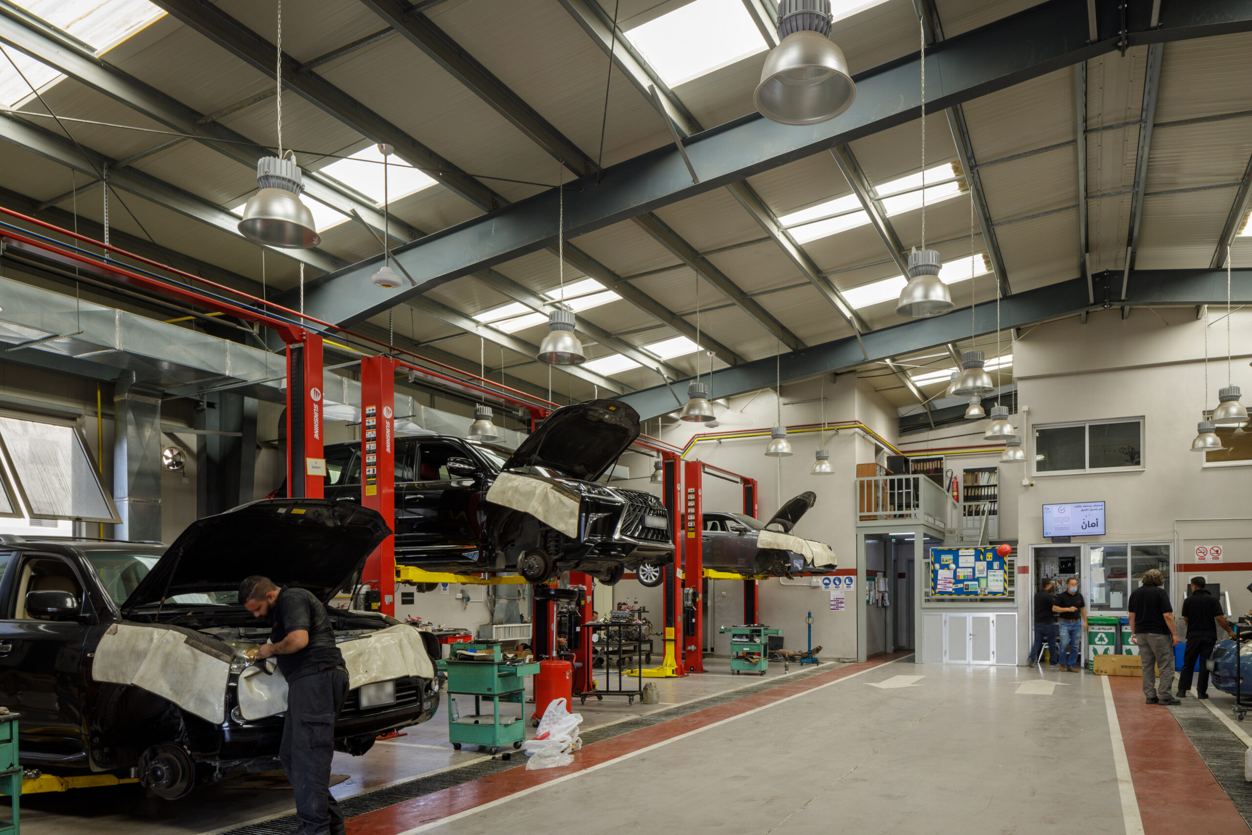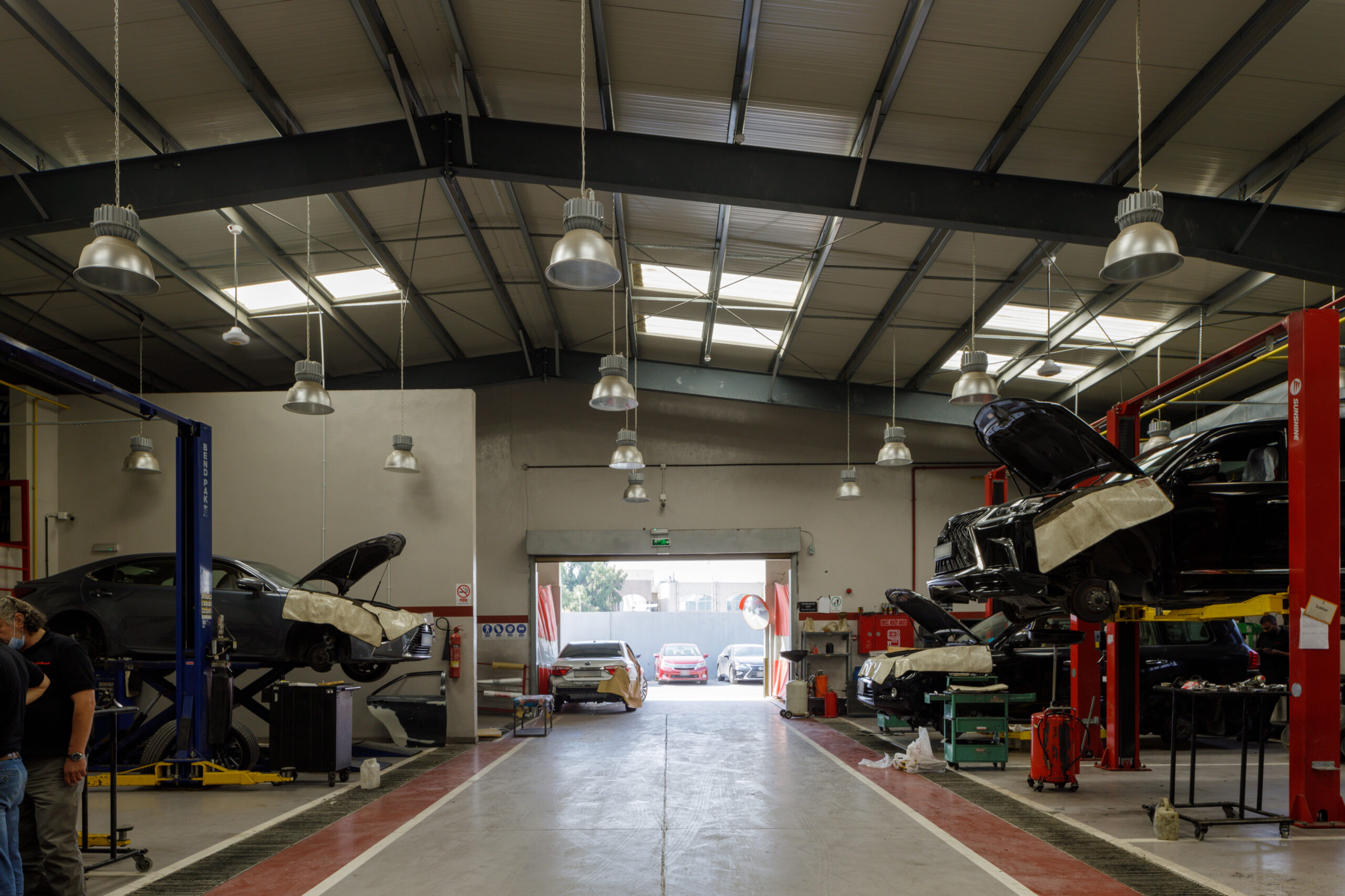 Full construction including steel structure, sandwich panels, walls, self-smoothing epoxy floors, interior and exterior finishes, and preparation of paint ovens, wash areas, with complete electrical and mechanical systems.