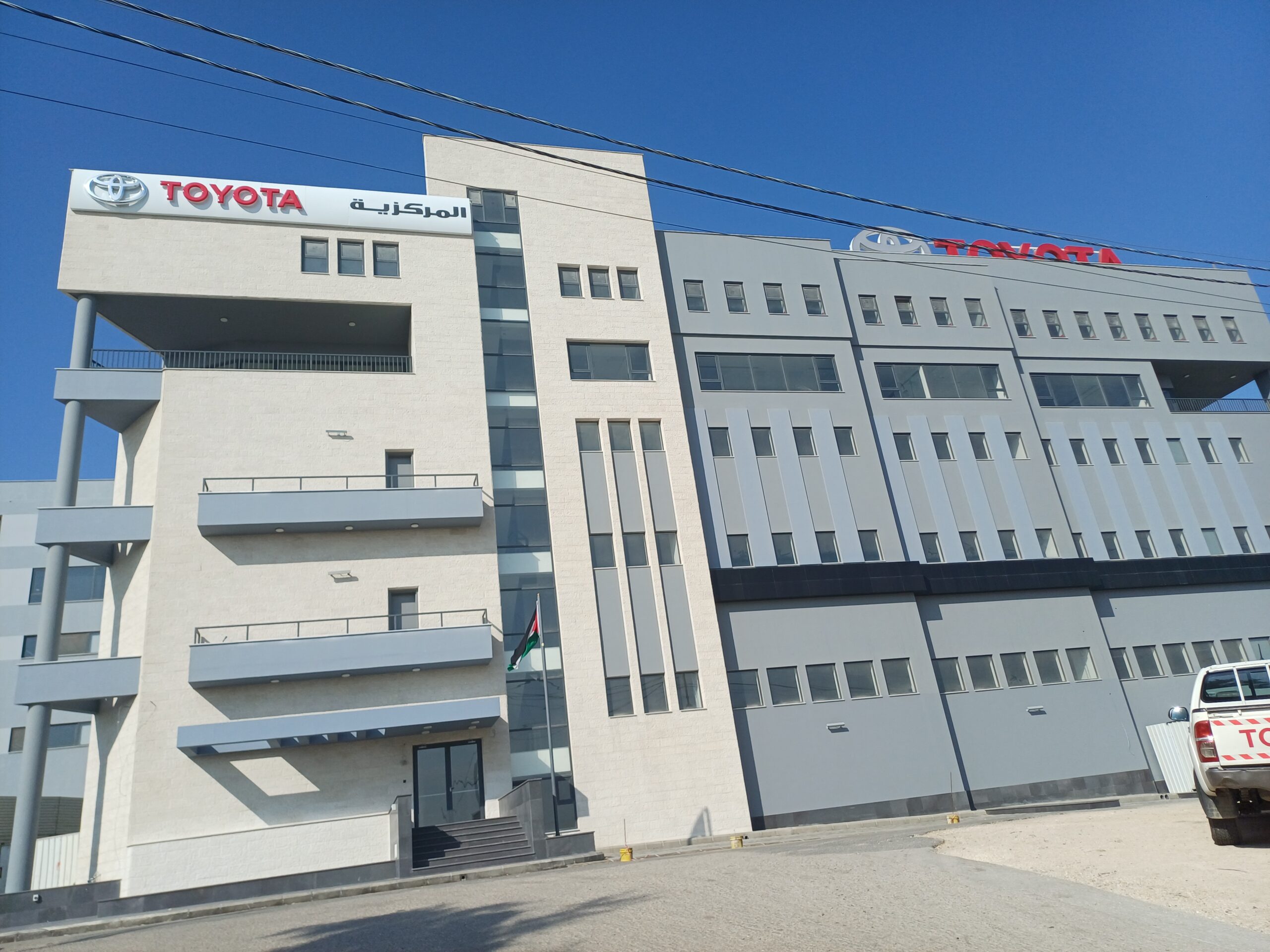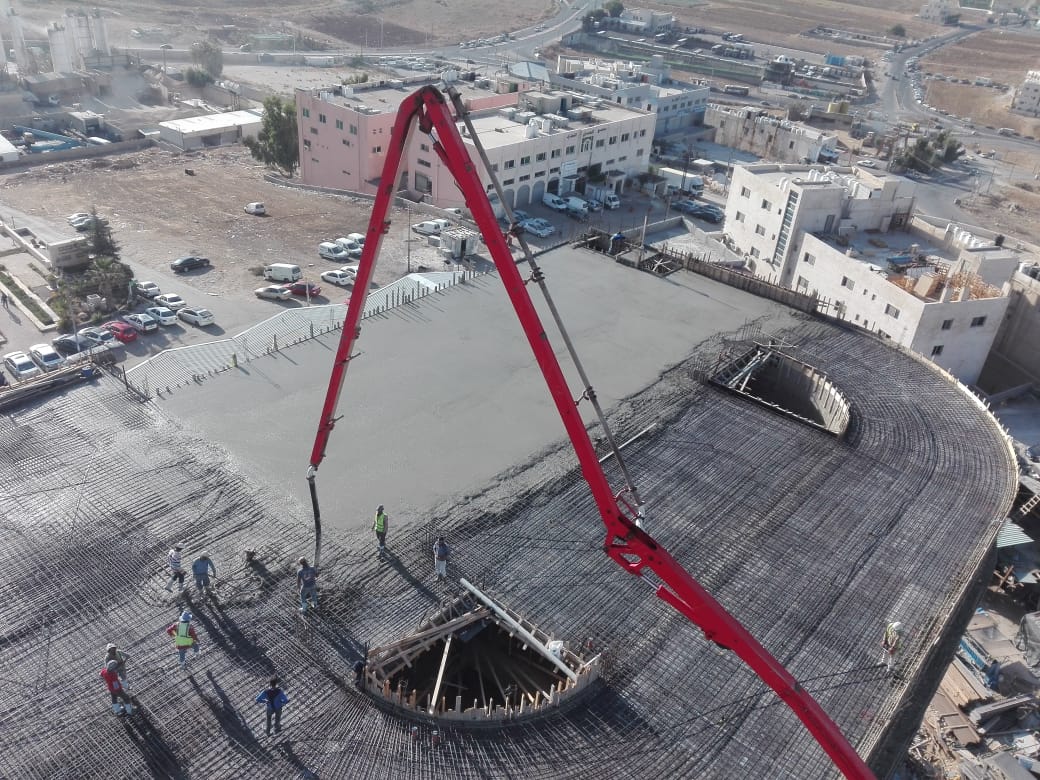 The project was delivered in two carefully managed phases. After successfully completing Phase 1 while maintaining full operational continuity of the existing facilities, our team carried out the demolition of the old building. Phase 2 construction then commenced on the same site, ensuring a seamless transition without disrupting daily operations. The project represents the largest vehicle maintenance center in Jordan, with a total built-up area of 26,000 square meters, fully equipped to support comprehensive automotive servicing activities. Our scope of work included deep excavation and reinforced shoring, construction of heavy-duty foundations, structural columns, load-bearing walls, and high-clearance beams suitable for industrial workshop operations. We also delivered multi-level vehicle ramps, including main ramps extending up to eight floors, ensuring safe and efficient vertical circulation. High-performance floor slabs were completed using power-trowel finishing, self-smoothing epoxy, and industrial tile flooring across large areas. Administrative offices, service areas, and reception zones were fully finished with partitions, doors, ceilings, tiling, aluminum systems, carpeting, and wood and glass decorative elements. We executed complete mechanical systems for vehicle maintenance, including compressed air, oil distribution, and integrated HVAC networks, along with full electrical systems for the building and all maintenance equipment. Internal and external thermal and waterproofing works were also successfully delivered to ensure long-term durability and operational reliability. External yard works were completed with interlock paving, troweled concrete, asphalt, fencing, and handrails. Expansion joints and structural connections between Phase 1 and Phase 2 were executed across all floors, in addition to stone cladding and curtain wall façade works, all delivered to the highest construction standards.
